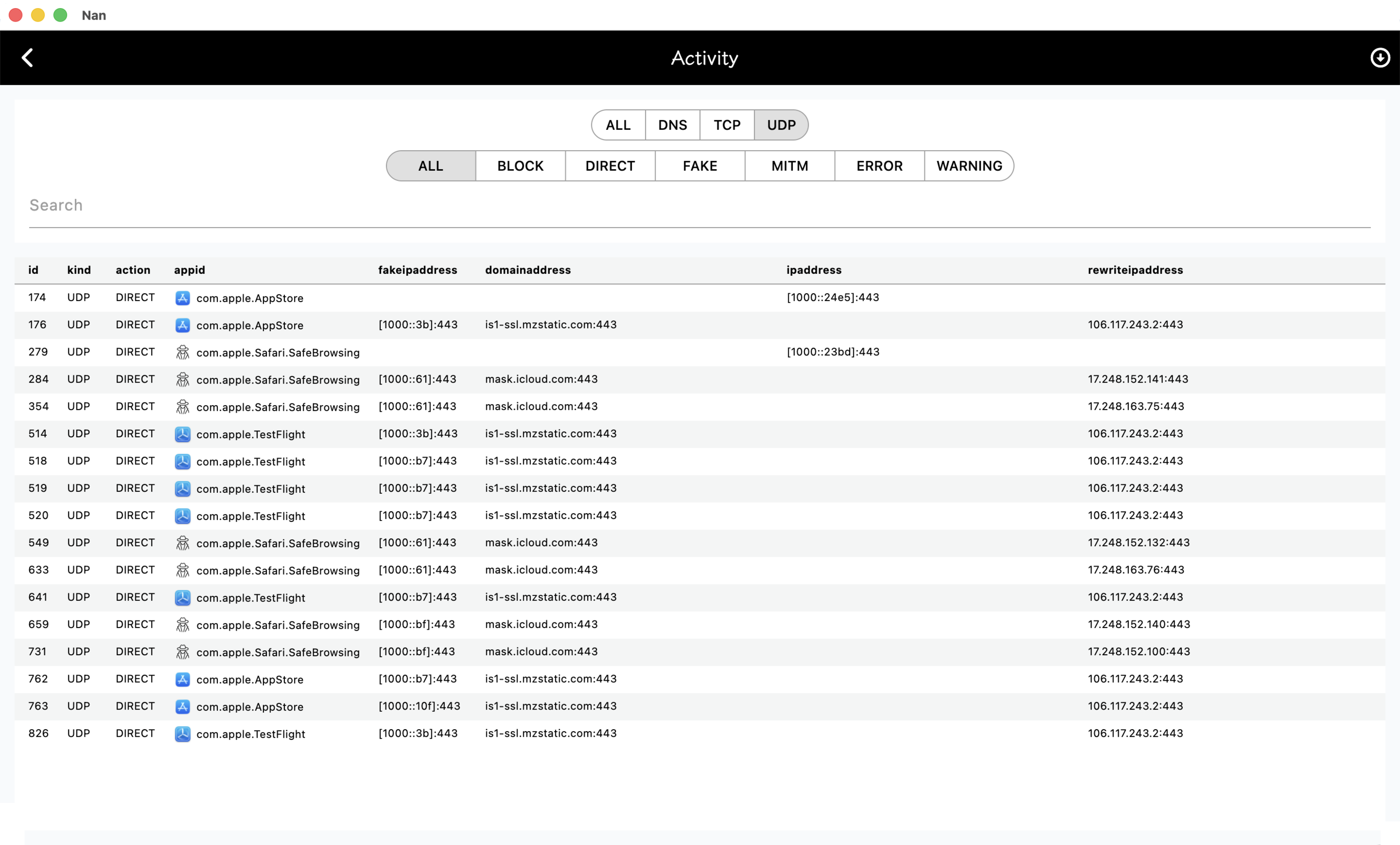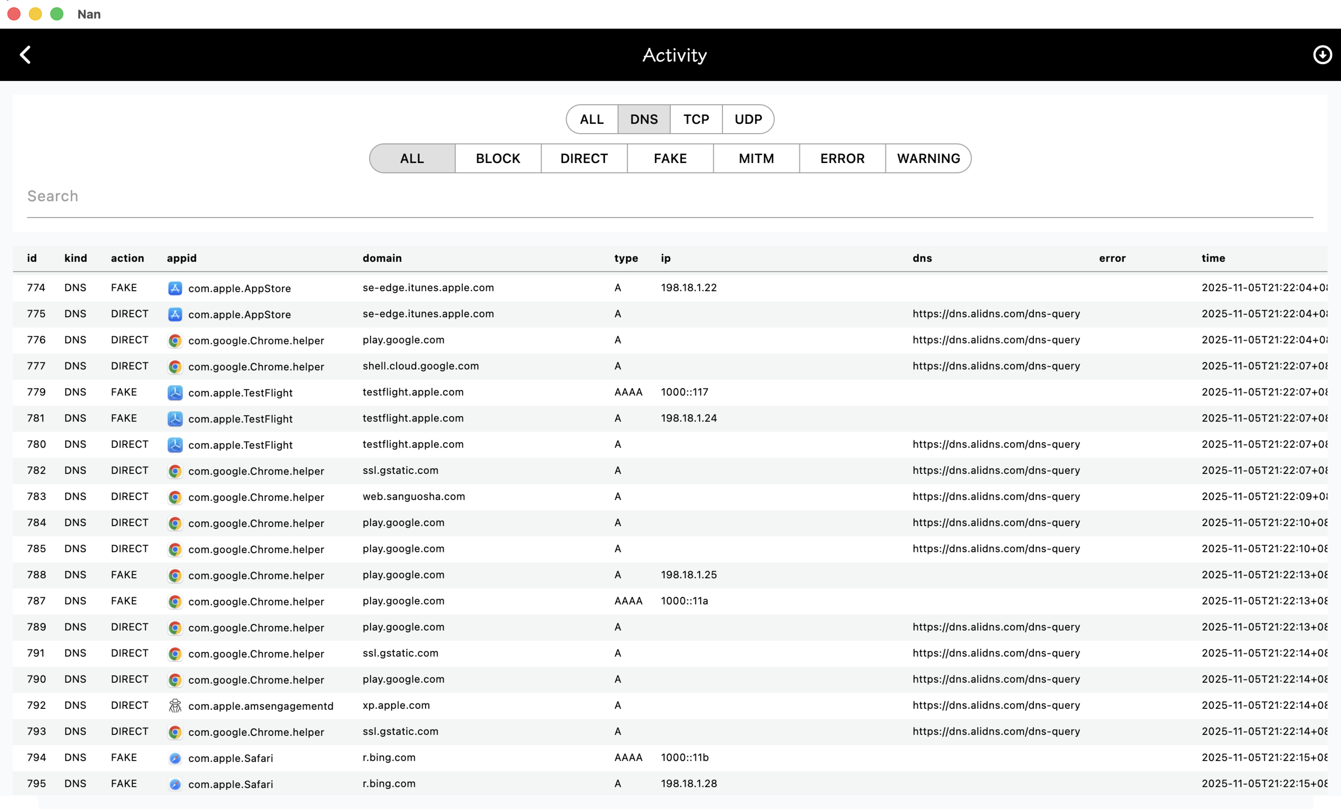 {{zh ? '工作在虚拟网卡级,非系统代理模式,避免有的应用不走代理。DNS, TCP 和 UDP。解密 HTTPS 和 WebSocket。Android 与此视频类似,可以在 Android 选择 App。' : 'Works at the virtual NIC level, not in system proxy mode, to prevent some applications from not going through the proxy. DNS, TCP and UDP. Decrypt HTTPS and WebSocket. The Android version is similar to this video, you can select the app on Android.'}}
